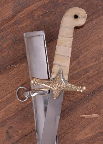 Diese Nachbildung eines Säbels der Generäle und Offiziere um 1831 besitzt eine Klinge aus EN45 Federstahl welche angeschärft ist, aber keinen finalen Schliff besitzt. Das verzierte Parierelement besteht aus Messing. Der Griff besteht aus Holz und Horn und ist im Mameluken-Stil gehalten.