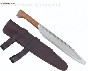 The Practical Scramasax has been produced in response to many requests from Viking re-enactors. Its 12 ˝” blade, with a rounded tip and 1/16” wide edge, make it an ideal secondary weapon. A horizontal-carry scabbard is provided.