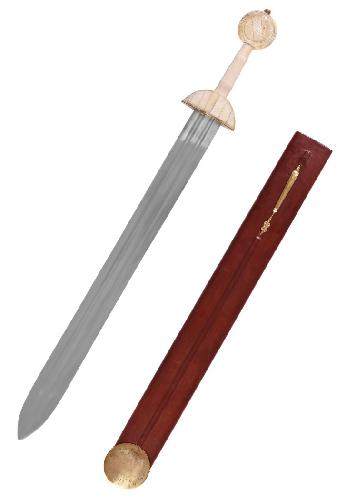 This replica is a reconstruction of a spatha from the 3rd Century AD. The blade has been forged from steel. The hilt is made of bones. The wooden hilt is covered with red leather and completed with authentic brass-fittings.