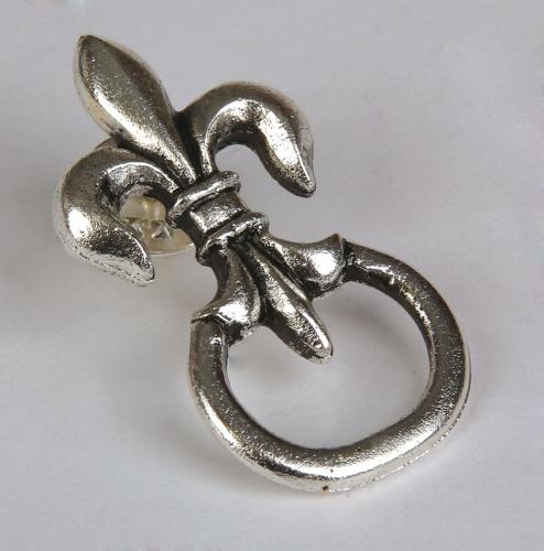 ozdobná brož ve tvaru francouzské lilie s očkem slouží jako držáček na brýle.