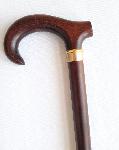 plně funkční vycházková hůl ze dřeva v barevné úpravě; tvarovaná dřevěná rukojeť umožňuje pevné opření ruky; spodní část je opatřena gumovým chráničem