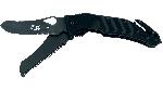 Nůž je vybaven nouzovým řezačem pásů, hrotem na rozbíjení skla a pilkou na dřevo se samostatnou pojistkou. Díky těmto prvkům dokáže efektivně řešit širokou škálu krizových situací – od záchrany z havarovaného vozidla po přežití v terénu. Ergonomická rukojeť z černého FRN® a oboustranný klip zajišťují jistý úchop a variabilní nošení.