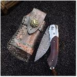 Kvalitní nůž Dellinger Mushroom Killer disponuje špičkovým řezným jádrem z oceli VG-10, které je vložené mezi 66 vrstev 2 nerezových damaškových ocelí. Ocel dosahuje vysoké tvrdosti až 61 HRC, což zaručuje mimořádnou odolnost proti opotřebení i korozi a zároveň se velmi snadno udržuje. Čepel je pro hladký chod uložena v kuličkových ložiscích a bezpečně zajištěna pojistkou linerlock. Ergonomická rukojeť je vyrobena z tmavého santalového dřeva, doplněná o bolstr z nerezové oceli. Praktickým detailem je otvor pro paracord s koženou šňůrkou. Součástí balení je také ručně šité kožené pouzdro.