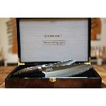 Velmi ostrý japonský nůž ze série Suncraft Elegancia z japonské práškové oceli SG2 s působivým designem a nejvyšší kvalitou. Tento nůž je užitečnou alternativou velkého šéfkuchařského nože v okamžiku kdy potřebujete přesné řezy, nebo například krájení zelených fazolí nebo jiné menší zeleniny a ovoce. Jsou vhodné též pro špikování a krájení masa. Zaoblené ostří umožňuje mírné kývání při řezu. Jeho ostrost je ideální pro přípravu sendvičů všeho druhu. Dlouhá čepel a rukojeť západního stylu Vám poskytne tu nejlepší kontrolu při řezání a krájení. Japonské umění, preciznost a nové technologie činí tento nůž z práškové oceli SG2 jedinečným a nenapodobitelným.