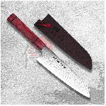 Velmi ostrý japonský nůž Santoku ze série Kanetsune Damascus Minamo-Kaze series z japonské damaškové oceli. Nůž Santoku je bezohledný kuchyňský válečník, který je připraven na všechna vaše přání. Japonské slovo "Santoku" se zhruba označuje jako "tři ctnosti", což svědčí o všestrannosti tohoto nožového stylu a druhu řezů, kterým vyniká (řezání, rozkrájení a mletí). Čepel je obvykle kratší než kuchařský nůž s výrazně odlišnou geometrií. Nůž Santoku je často prohlašován za fúzi mezi šéfkuchařským nožem a Nakiri, což vám přináší výhody obou zmíněných. Vyšší faseta snižuje tření, krájení je tak přesnější. Santoku je dokonalým společníkem při práci s masem, rybami, zeleninou a ovocem. Nepřekonatelné vlastnosti nože oceníte například při krájení cibule. Ostrost čepele zajistí minimální únik tekutiny a vaše pokrmy budou plné šťávy a vitamínů.