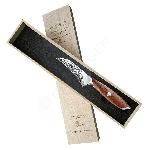 Tvar čepele na tomto noži připomíná japonský styl kiridashi menší univerzální čepel s ostrou špičkou, která je typická pro přesné a jemné řezy. Tento design se hodí pro různé detailní práce – od řezání drobných surovin, jako jsou bylinky nebo ovoce, až po přesné úpravy při porcování masa. Ostrá špička umožňuje přesné vedení řezu a kontrolu při práci. Takový tvar je oblíbený také pro různé řemeslné nebo outdoorové činnosti, kde je potřeba kombinovat pevnost a přesnost. Navíc díky damaškové oceli a celkovému tvaru působí nejen funkčně, ale i esteticky. Je to perfektní volba pro ty, kteří si cení detailu a preciznosti.