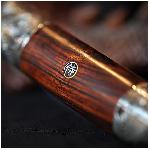 Jedinečný nůž Dragon Sign Engraved s čepelí ze švédské damaškové oceli SANDVIK 19C27 + 440C + 1095 Spider bombing mosaic pattern. Rukojeť je složena z ručně ryté nerezové oceli a ze dřeva Desert Iron Wood. Nepřehlédnutelný vzor damaškové oceli a ručně ryté oboustranné HORIMONO tvoří perfektní pár a konečný výsledek je naprosto uchvacující. Každý nůž je ručně vyrobený a tím pádem jedinečný a originální. Vyrobeno bylo pouze 9 kusů a každý je dodáván s certifikátem pravosti.