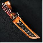Střenka (tsuka) je zdobena broušenou fosílií mamutího zubu nalezenou na Sibiři. Tento vzácný materiál starý více než 10 000 let dodává nástroji historickou hloubku a neopakovatelný vizuální dojem. Ochranné prvky (tsuba a habaki) jsou rovněž z damaškové oceli, čímž vzniká naprosto uchvacující celek pro každého milovníka bushcraft vybavení a historie.