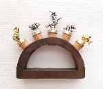 celodřevěný stojánek na vystavení ozdobných zátek; počet zátek je 5;