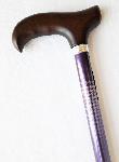 funkční vycházková hůl z tvrzeného hliníku v elegantní designové úpravě; hůl má tvarovanou dřevěnou rukojeť; spodní část je opatřena širším gumovým chráničem proti skluzu;